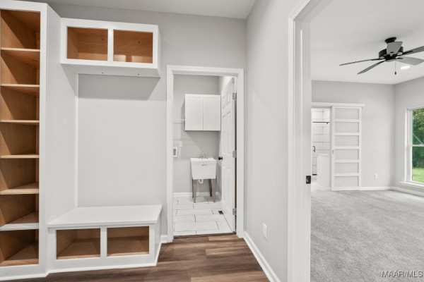 The rear patio is perfect for relaxing or hosting gatherings. An added bonus is the front-load washer and dryer in the laundry room, making laundry day a breeze. Extra features include luxury vinyl flooring, tankless water heater, a mudroom bench with shoe organizers and high-end finishes throughout.