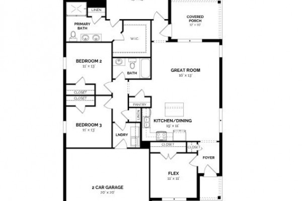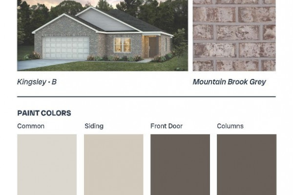 Special incentives available! Please ask for details. The Kingsley’s covered entry welcomes you into a cozy foyer and a versatile flex room—perfect for a home office, gym, or quiet retreat tailored to your lifestyle. The open-concept kitchen features a large island and ample counter space, flowing seamlessly into the great room. At the rear of the home, the primary suite offers a double vanity and spacious walk-in closet. Two additional bedrooms share a conveniently located hallway bathroom. The laundry room connects to the 2-car garage, creating an ideal mudroom space to keep your home tidy.
