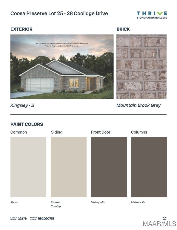Special incentives available! Please ask for details. The Kingsley’s covered entry welcomes you into a cozy foyer and a versatile flex room—perfect for a home office, gym, or quiet retreat tailored to your lifestyle. The open-concept kitchen features a large island and ample counter space, flowing seamlessly into the great room. At the rear of the home, the primary suite offers a double vanity and spacious walk-in closet. Two additional bedrooms share a conveniently located hallway bathroom. The laundry room connects to the 2-car garage, creating an ideal mudroom space to keep your home tidy.