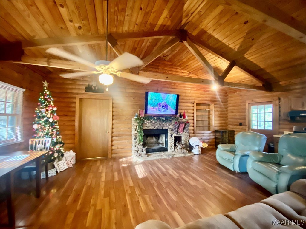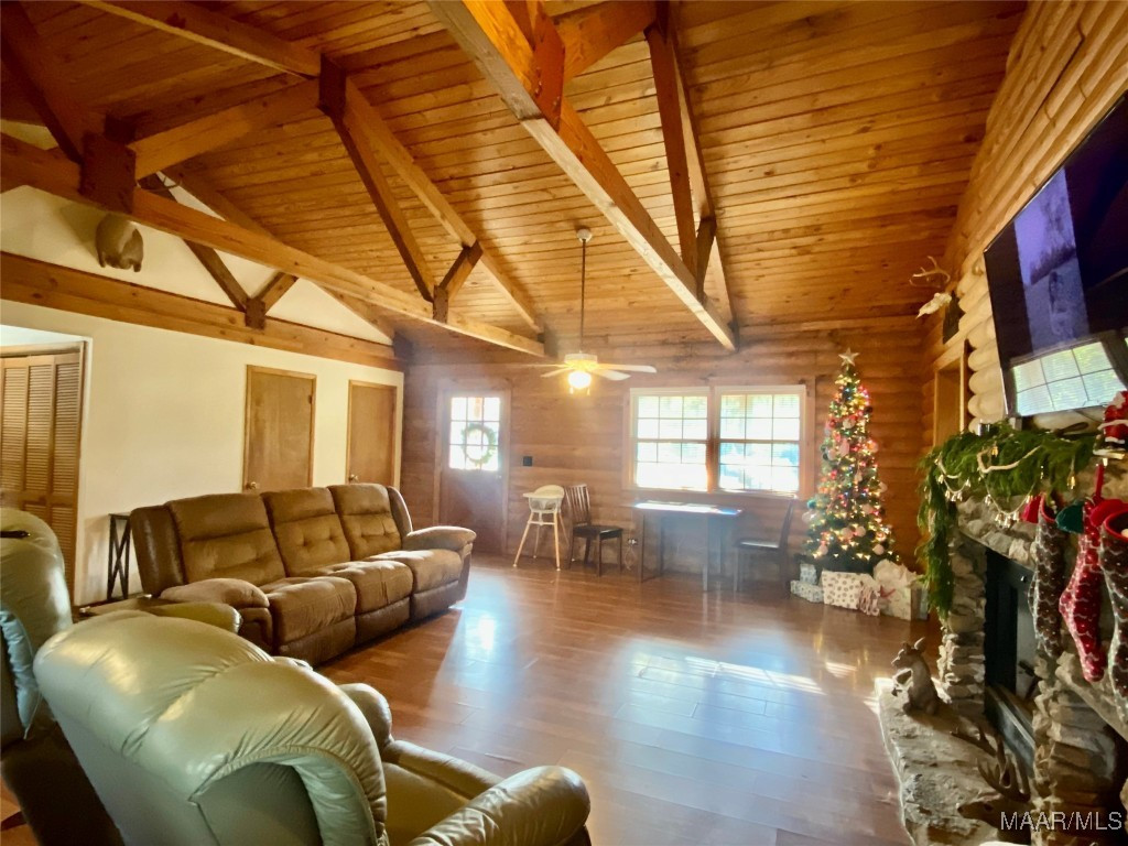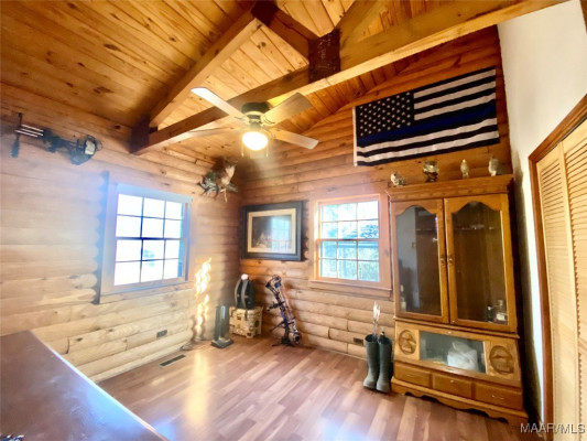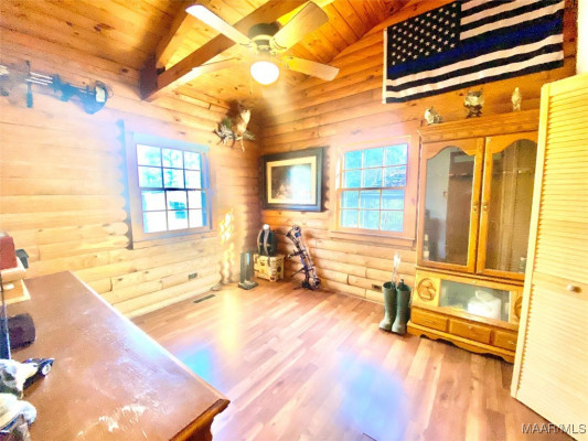 Would you love to hunt on your own property? This beautiful partially wooded land has so many deer, turkey, & other wildlife! Log Cabin nestled almost 2 acres! Country living close to city conveniences! Very open 3 bedroom 2 bath home with beautiful large stone fireplace in the spacious den with exposed beams & wood ceiling!! Very private! 2 covered porches! The front porch extends the entire width of the house and a covered back porch/deck too great for grilling or just relaxing! It’s truly a nature lovers dream & it’s great for enjoying the outdoors! You’ll love the recently installed low maintenance metal roof and HVAC with transferable warranty! There is an almost new 12 X 24 SHED/WIRED WORKSHOP–great for extra storage too! Very convenient to local parks, schools, and shopping! Located within minutes to downtown Millbrook, Prattville, Wetumpka & Montgomery! Possible NO MONEY DOWN! Call today for more info!!