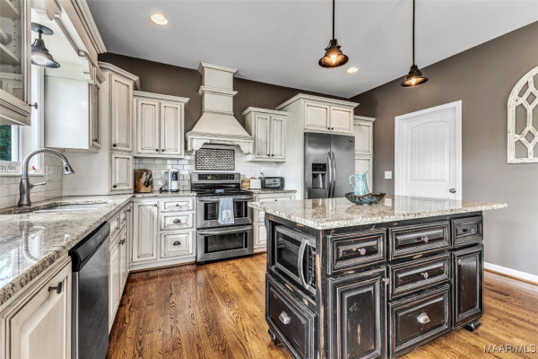 ENJOY your morning coffee or cappuccino on the covered porch of this BEAUTIFUL, FULLY FURNISHED 4-bedroom, 3.5-bath home located in ALAGA LANDING on LAKE MITCHELL! This PEACEFUL, LAKE FRONT RETREAT offers 120 feet of WATERFRONT and BREATHTAKING views throughout the home! The kitchen features an abundance of BEAUTIFUL cabinets, granite counter tops, island , a breakfast area overlooking the water and a door leading out to the covered porch! The main living room features a COZY, STONE fireplace! You’ll fall in love with the primary suite with it’s lake view, large walk in closet, double vanities, and shower! The main floor also has a nice size guest room with a bath. UPSTAIRS you’ll find a bedroom with a sitting area! Downstairs the basement offers a living area, guest room and bath! Stroll down to the pier to unwind from a busy day as you sit, relax and enjoy an adult beverage! Nice boathouse with one boat lift and storage! Ready for LAKE LIFE LIVING at its FINEST??? CALL to set up your personal tour TODAY!