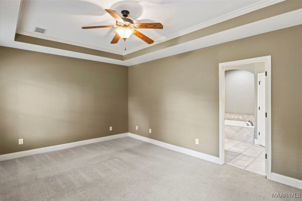 Inside, you’ll love the large den with its high ceilings and gleaming hardwood floors. You’ll also love the generously sized primary suite with walk in closets and designed as your own private retreat. The master bath features a relaxing garden tub, double vanities, and a separate tiled shower. The homes thoughtful split floor plan provides extra privacy, with three additional bedrooms and a full bath on the opposite side of the home.