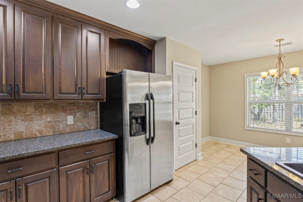 The spacious eat-in kitchen is a true highlight, boasting granite countertops, electric stove, microwave, and plenty of cabinet and counter space for cooking, storage, and entertaining. A large laundry room adds functionality and convenience.