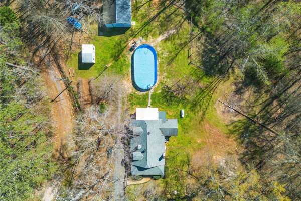 Upstairs, you’ll find a second level featuring a loft space, a third bedroom, and an additional full bathroom, ideal for guests or a private suite. Step outside to enjoy even more: a brand-new above-ground heated saltwater pool, perfect for year-round enjoyment. The property also includes a newly added pole barn with a roll-up door, a bunny hutch, and an additional storage shed. Mature fruit trees are scattered throughout the property, producing peaches, figs, muscadines, blueberries, plums, and apples. In addition to its charm, this home has been thoughtfully updated with major improvements, including new windows, a tankless water heater, two new mini-split systems, updated plumbing, and much more.