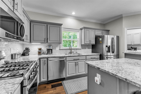 appliances (gas range) and beautiful granite counter tops. The finished basement is accessed