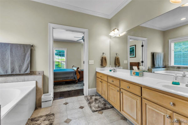 vanities, a garden tub, large walk-in closet and a separate shower. The three additional