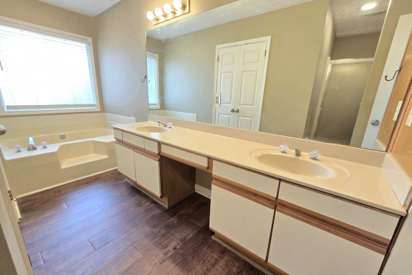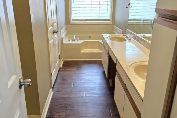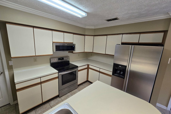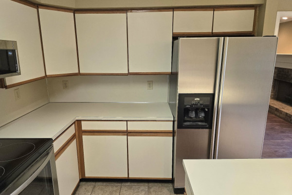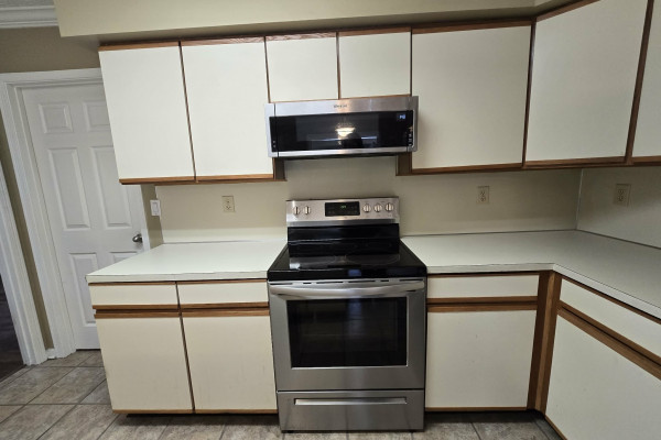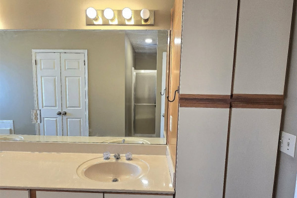 The kitchen and bath rooms feature matching cabinetry throughout, creating a cohesive, polished feel from room to room.