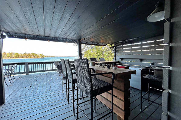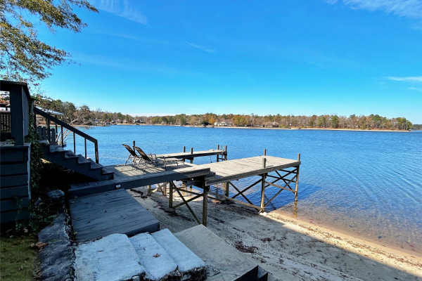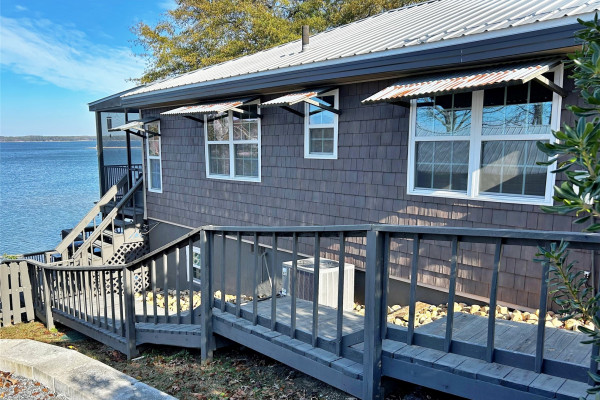 Cozy waterfront Lake Martin home on cul-de-sac. Approx. 76ft water frontage with several mile unobstructed view of the lake. 2 bedrooms, one bath, kitchen, sitting, dining upstairs. Lower level, one bedroom, one bathroom, access to covered bar and patio area. New septic 2020, new water heater 2024. High grade laminate flooring, new appliances 2020, low maintenance metal roof. New windows in basement 2023, new exterior doors 2023, new patio doors 2023, Very clean, move-in ready.