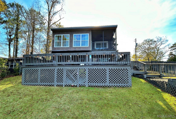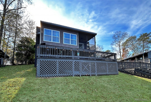 Cozy waterfront Lake Martin home on cul-de-sac. Approx. 76ft water frontage with several mile unobstructed view of the lake. 2 bedrooms, one bath, kitchen, sitting, dining upstairs. Lower level, one bedroom, one bathroom, access to covered bar and patio area. New septic 2020, new water heater 2024. High grade laminate flooring, new appliances 2020, low maintenance metal roof. New windows in basement 2023, new exterior doors 2023, new patio doors 2023, Very clean, move-in ready.