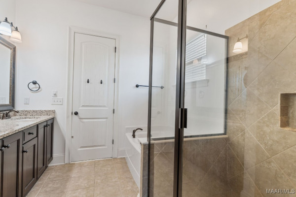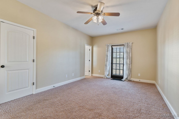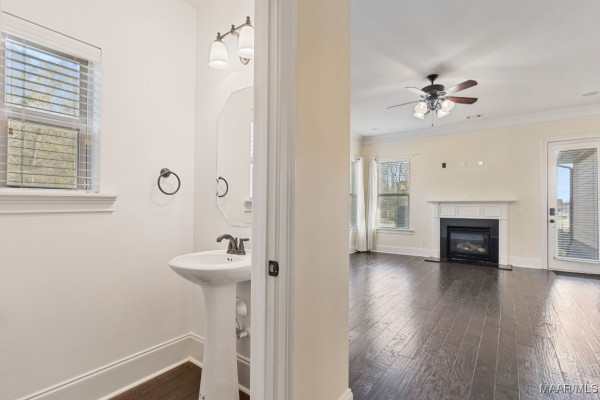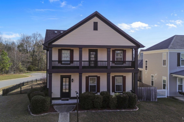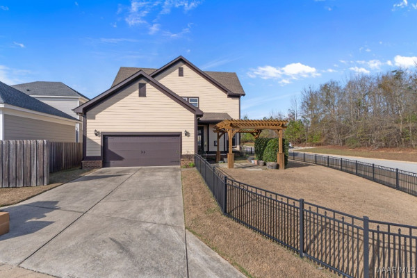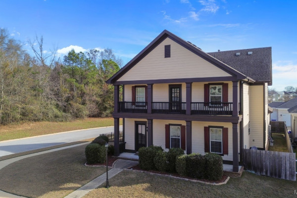 Located in the desirable Eastwood Subdivision bordering the beautiful Robert Trent Jones Capitol Hill Golf Course, this home offers the perfect blend of charm, convenience, and quality construction. Enjoy a peaceful neighborhood just seconds from the Target shopping center and Interstate 65, and less than 15 minutes to downtown Montgomery and Maxwell AFB. Inside, the home features soaring smooth ceilings, a lovely trim package, wood flooring, and 8-foot doors throughout the downstairs common areas. Quality details continue with real tubs and tile surrounds—no fiberglass inserts. Surround sound wiring and speakers are installed in the common areas, primary suite, and back patio. Air conditioning unit replaced in 2024. Just off the foyer is an elegant dining room with a coffered ceiling. The main level also has a convenient half bath. The open-concept family room and kitchen create an inviting living space. The family room includes a gas log fireplace and access to the fenced backyard. The kitchen is well-appointed with a work island offering power outlets and storage, granite countertops, a gas range, abundant cabinetry, and a nearby huge double-door pantry. The primary suite is located on the main level and easily accommodates a king-size bedroom suite. The spa-like bath features a granite double-sink vanity with drawer storage, separate water closet, soaking tub, fully tiled shower, and an expansive custom closet. Upstairs, Bedroom 2 includes a large closet, private bath, and dedicated porch access. A spacious bonus room provides flexibility as a recreation room or second living area. Bedrooms 3 and 4 offer generous closet space and share a hall bath. Additional features include a main-level laundry room with cabinet storage, a double garage, and a 4–6 person storm shelter. This home delivers comfort, style, and an unbeatable location. Schedule your tour today!