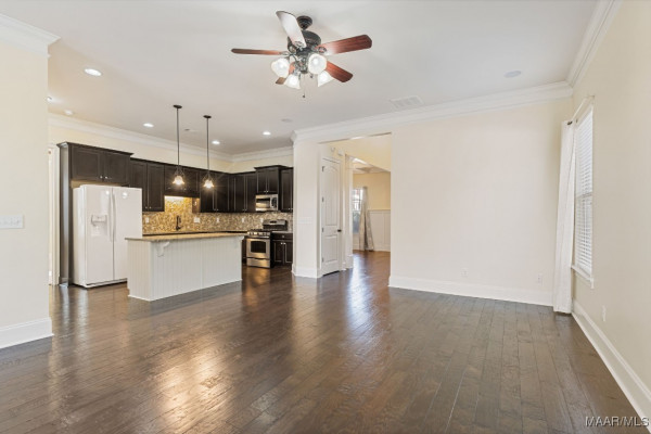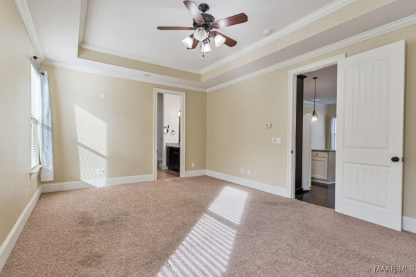 Located in the desirable Eastwood Subdivision bordering the beautiful Robert Trent Jones Capitol Hill Golf Course, this home offers the perfect blend of charm, convenience, and quality construction. Enjoy a peaceful neighborhood just seconds from the Target shopping center and Interstate 65, and less than 15 minutes to downtown Montgomery and Maxwell AFB. Inside, the home features soaring smooth ceilings, a lovely trim package, wood flooring, and 8-foot doors throughout the downstairs common areas. Quality details continue with real tubs and tile surrounds—no fiberglass inserts. Surround sound wiring and speakers are installed in the common areas, primary suite, and back patio. Air conditioning unit replaced in 2024. Just off the foyer is an elegant dining room with a coffered ceiling. The main level also has a convenient half bath. The open-concept family room and kitchen create an inviting living space. The family room includes a gas log fireplace and access to the fenced backyard. The kitchen is well-appointed with a work island offering power outlets and storage, granite countertops, a gas range, abundant cabinetry, and a nearby huge double-door pantry. The primary suite is located on the main level and easily accommodates a king-size bedroom suite. The spa-like bath features a granite double-sink vanity with drawer storage, separate water closet, soaking tub, fully tiled shower, and an expansive custom closet. Upstairs, Bedroom 2 includes a large closet, private bath, and dedicated porch access. A spacious bonus room provides flexibility as a recreation room or second living area. Bedrooms 3 and 4 offer generous closet space and share a hall bath. Additional features include a main-level laundry room with cabinet storage, a double garage, and a 4–6 person storm shelter. This home delivers comfort, style, and an unbeatable location. Schedule your tour today!
