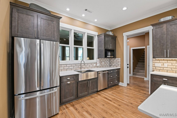 BEAUTIFUL 2023 CUSTOM HOME by David White of DBW Builders! Superior ONE-LEVEL Living + Bonus Suite upstairs, located in Glynwood. It boasts a 2-lot building site and measures a spacious 1.29 acre +/- double lot. This practically new build combines modern finishes, accessibility, a peaceful natural backdrop that will have no other homes that backs up to this lot, and it has an incredible open-concept living space with soaring cathedral ceilings. The kitchen features a separate LARGE island, granite countertops, farm-style stainless sink, brick backsplashes, soft-close cabinets, stainless appliances to include a dual-fuel range with Wi-Fi–enabled convection oven. The main-level suite has a well-appointed bathroom with separate vanities, zero entry no slip walk-in shower, wide doors throughout just in case you ever need wheelchair access. Upstairs, a private bedroom suite/bonus room with its own full bathroom offers ideal space for guests, in-laws, older children, a home office, or hobby area. Outside, the EXTRA LARGE LOT provides a natural backyard setting with mature trees! Peek under the back deck and you’ll find a hidden gem for the master gardener and a drive-in workshop with roll-up door! The mature trees give you a relaxing backyard and the positive feeling no one will ever build there!