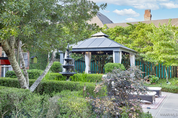 privacy by the salt water pool and gazebo while the soothing fountain splashes. In the evening,