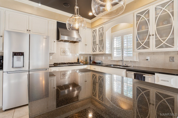 a glistening pool add to a sense of living in a European Manor. Inside this distinctive residence, a cook’s kitchen awaits, packed with professional features to delight any culinary buff. There is a separate laundry room with state-of-the-art washer, dryer