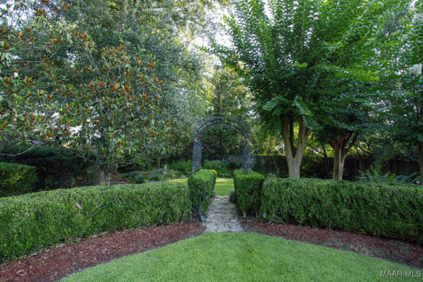 comfort. A sizable lot showcasing a French Country exterior and elaborate gardens surrounding