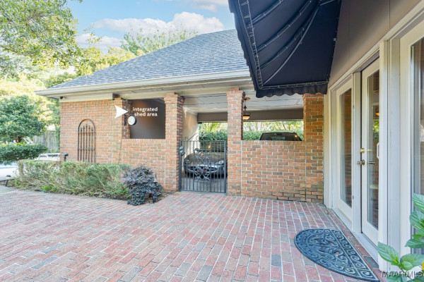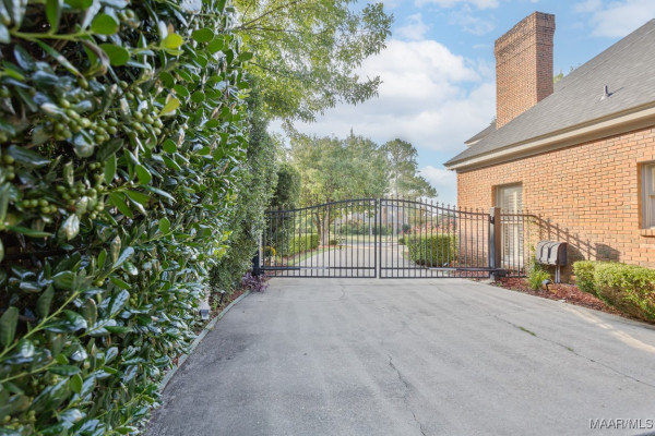 driveway with a stately gate, safely encloses the two vehicle carport with a large integrated