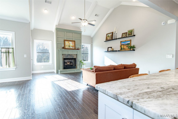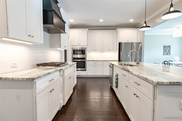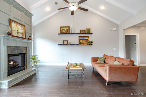 Your next home awaits in the ever popular and desirable Glennbrooke neighborhood! The Alexandria II floorplan offers so much variety and potential for any homebuyer. Boasting 4 bedrooms (or 5) and 4 bathrooms including an upstairs bonus room which has it’s own en-suite bathroom and walk in closet. Entering the home notice the beautiful wood floors that are throughout the house. To the left is the dinning room able to accommodate parties of 8 or more! To the right is an office space that the current homeowner has made into a cozy reading room with custom built ins. Continue on into the spacious open concept kitchen and living room. The kitchen sports quartz counter tops, a HUGE island and spacious walk in pantry. Have breakfast in the breakfast nook under the living rooms vaulted ceilings or cuddle up and enjoy the gas fireplace with views to the backyard. Located off the breakfast area is a bedroom and bath. A perfect spot for those visiting guests. To the right of the home is the separate principal bedroom and en-suite. This room has it all. Spacious with several windows for natural lighting and updated flooring. The bathroom has double vanities, garden tub, walk in shower, and two of the biggest walk in closets you will see. Moving towards the opposite side of the home you will find 2 other bedrooms and a hall bath making it convenient for children or guests. The 2 car garage has plenty of space for storage and parking. Located right off the garage is a great laundry room/mudroom with cabinets and ample space. The backyard is tranquil as it overlooks the woods and adds a sense of privacy with no back yard neighbors. Located towards the end of the street and cul-de-sac brings peace of mind to those worried about noise and traffic. Amenities include 3 pools, a splash pad, 2 playgrounds, a pond, a walking trail, and a green space for sports. Located right off I-65 gives you quick access to the greater Prattville, Millbrook and Montgomery areas! SECURITY SYSTEM IN USE