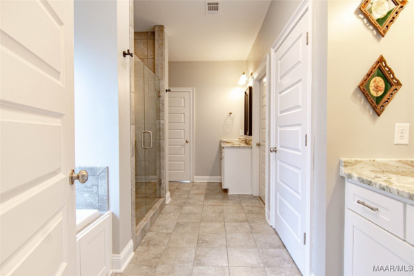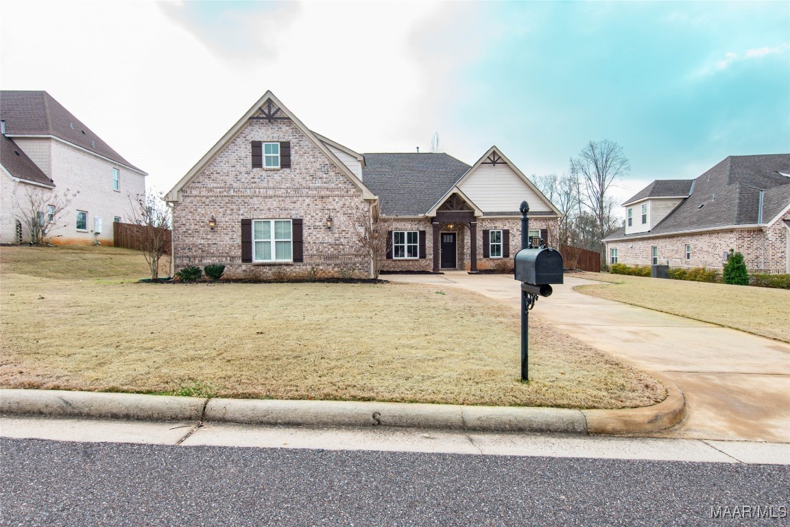 Your next home awaits in the ever popular and desirable Glennbrooke neighborhood! The Alexandria II floorplan offers so much variety and potential for any homebuyer. Boasting 4 bedrooms (or 5) and 4 bathrooms including an upstairs bonus room which has it’s own en-suite bathroom and walk in closet. Entering the home notice the beautiful wood floors that are throughout the house. To the left is the dinning room able to accommodate parties of 8 or more! To the right is an office space that the current homeowner has made into a cozy reading room with custom built ins. Continue on into the spacious open concept kitchen and living room. The kitchen sports quartz counter tops, a HUGE island and spacious walk in pantry. Have breakfast in the breakfast nook under the living rooms vaulted ceilings or cuddle up and enjoy the gas fireplace with views to the backyard. Located off the breakfast area is a bedroom and bath. A perfect spot for those visiting guests. To the right of the home is the separate principal bedroom and en-suite. This room has it all. Spacious with several windows for natural lighting and updated flooring. The bathroom has double vanities, garden tub, walk in shower, and two of the biggest walk in closets you will see. Moving towards the opposite side of the home you will find 2 other bedrooms and a hall bath making it convenient for children or guests. The 2 car garage has plenty of space for storage and parking. Located right off the garage is a great laundry room/mudroom with cabinets and ample space. The backyard is tranquil as it overlooks the woods and adds a sense of privacy with no back yard neighbors. Located towards the end of the street and cul-de-sac brings peace of mind to those worried about noise and traffic. Amenities include 3 pools, a splash pad, 2 playgrounds, a pond, a walking trail, and a green space for sports. Located right off I-65 gives you quick access to the greater Prattville, Millbrook and Montgomery areas! SECURITY SYSTEM IN USE