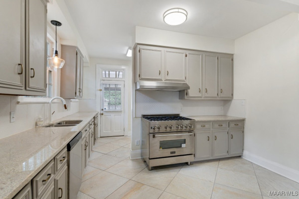 The home has a stylish, spacious kitchen that is equipped with stone counter tops, a chef’s-grade gas range, and thoughtful design for both entertaining and everyday living.