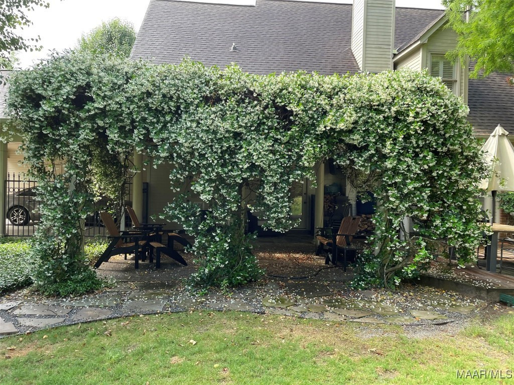 Simply beautiful is an understatement when describing the lovely private rear yard. Enjoy the covered patio and a jasmine-covered pergola, creating a serene and inviting outdoor retreat. In addition, this home has indoor wooden plantation shutters, a home alarm system and a sprinkler system.