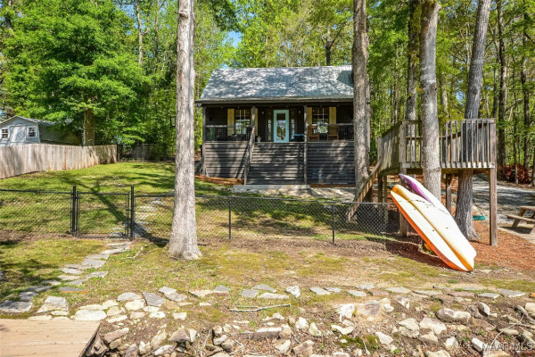 Welcome to your perfect lakefront retreat in Jacksons Gap, AL! This charming three-bedroom, two-bath cabin is nestled in a peaceful cove on the stunning waters of Lake Martin. The open floor plan features a beautifully updated kitchen, spacious great room, and inviting dining area—ideal for entertaining or relaxing with family. Step out onto the covered front porch and take in the serene views of the lake, just steps from your door. The fenced-in yard makes it pet-friendly and perfect for enjoying the outdoors with your furry friends. Whether you’re looking for a weekend getaway or a full-time escape, this lakeside gem offers the perfect blend of comfort, charm, and natural beauty.