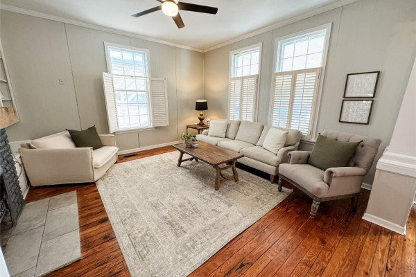 Nestled in the heart of Downtown Prattville, this home offers the perfect blend of charm, convenience, and comfort. Imagine strolling along the sidewalks of the business district, shopping at unique stores, or enjoying a meal or coffee at one of the local restaurants. Take a leisurely walk along the scenic Creek Walk, and then retreat to your sanctuary—a home designed for relaxation and entertaining. Throughout the home, you’ll find high ceilings accented by wide crown molding, adding timeless elegance. The updated kitchen is a chef’s dream with granite countertops, abundant cabinetry, and a breakfast bar opening to a cozy gathering space.