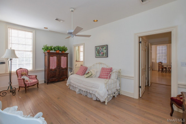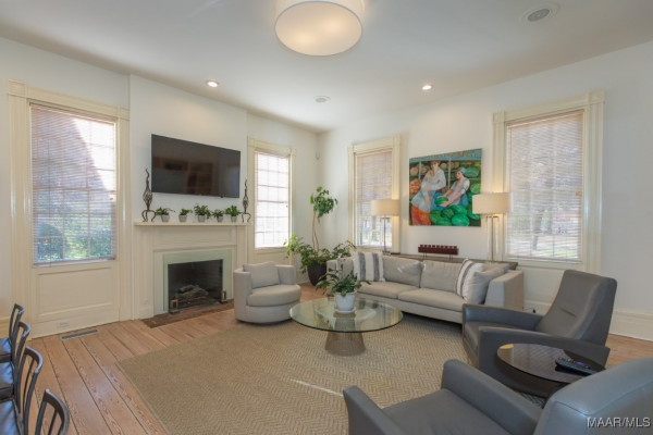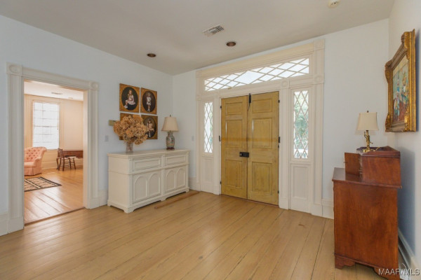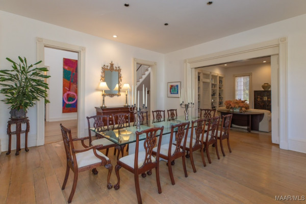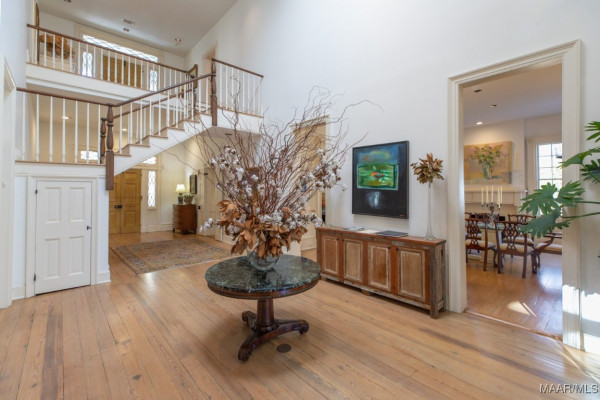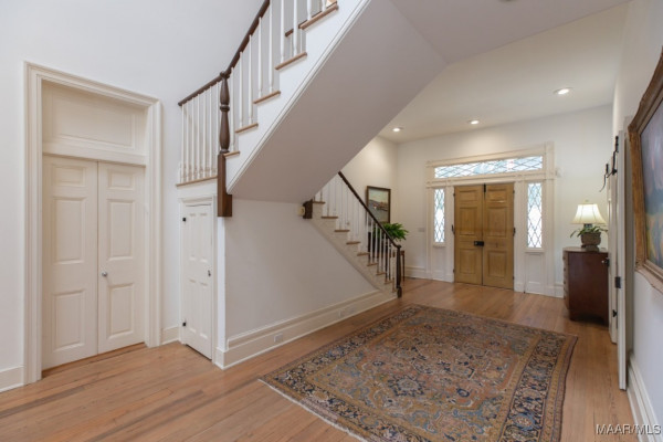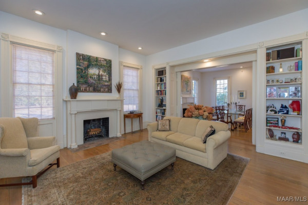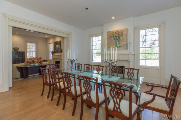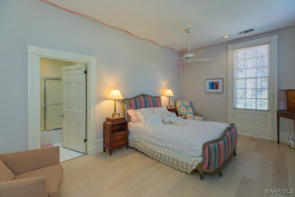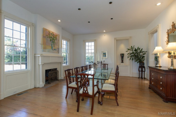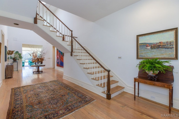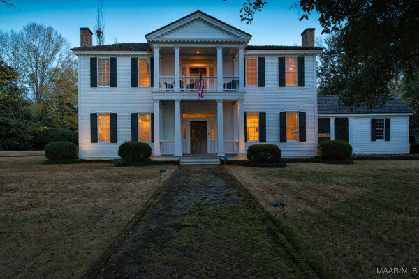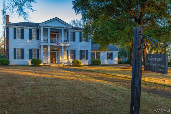 Built in 1821, iconic Edgewood is known for its elegance, superior construction, architectural integrity, prominent location and rich history. The original portion of the home is all heart pine, braced with two story tall pegged and notched pine boards, with 8 to 10 inch exterior walls. Painstakingly restored and completely remodeled by noted architect Jim Barganier, the restoration preserved the Federal style architectural details and created dramatic spaces that are perfect for entertaining: entrance foyer was expanded into a 23 ft. tall atrium, a rear addition with stunning foyer, spiral staircase and living room overlooking rear yard through a wall of glass. The architect added a massive new foundation, removed all plaster walls to add new insulation/sheetrock, added a new 2nd story primary bedroom suite and MUCH more. Tall ceilings up and down, 8 fireplaces w/gas starters, and 10 ft. solid core interior doors. Just off the foyer to the left is a gorgeous library with huge pocket doors that operate in between the dining room. To the right of the entrance foyer is a remodeled kitchen and den (2020) and wonderful breakfast room, designed by architect Lee Sims. The fabulous den is open to the kitchen, which offers a large custom island w/breakfast bar, custom cabinetry, butler’s pantry, double sided fireplace and high end stainless appliances. The second level features balconies that overlook the atrium and connect the upstairs bedrooms. The primary bedroom looks out at the rear gardens through floor to ceiling windows and has a wet bar, fireplace and luxurious bath with dressing area and walk in closets. 4 spacious guest bedrooms and 3 baths round out the second level along with an impressive outside porch, with inspiring views of Thomas Avenue. Stunning grounds with well fed irrigation, fully fenced backyard, English garden, terraces and multiple parking areas. Cedar shake roof(2016) with copper gutters and flashing. One of a kind home in pristine condition.