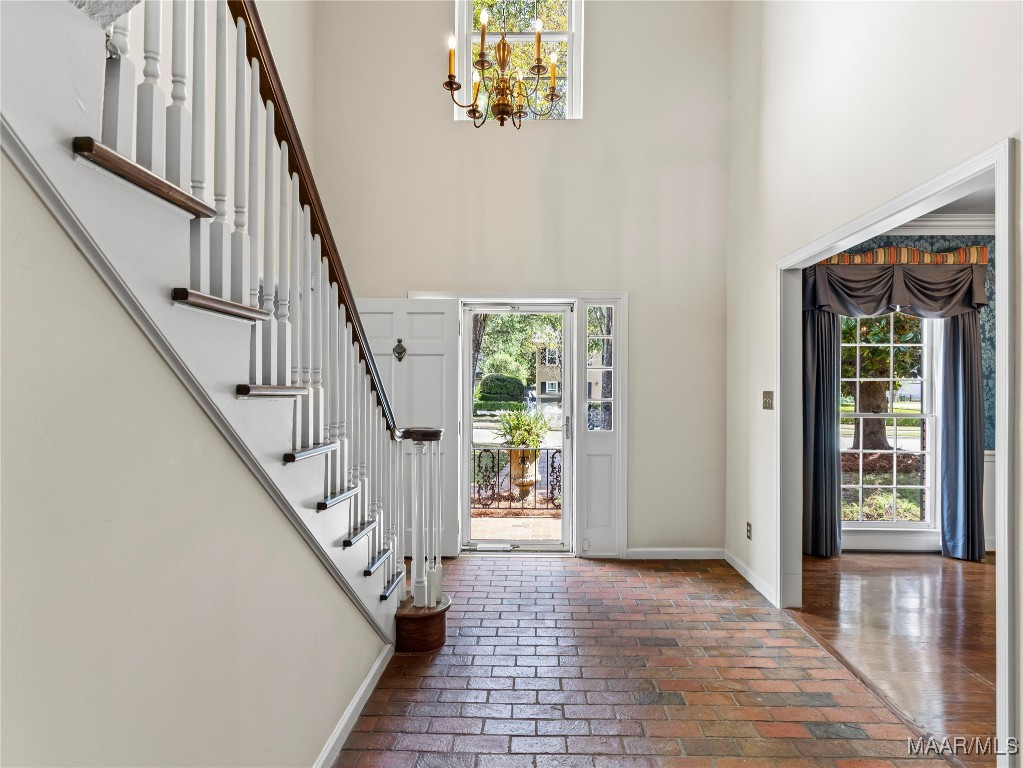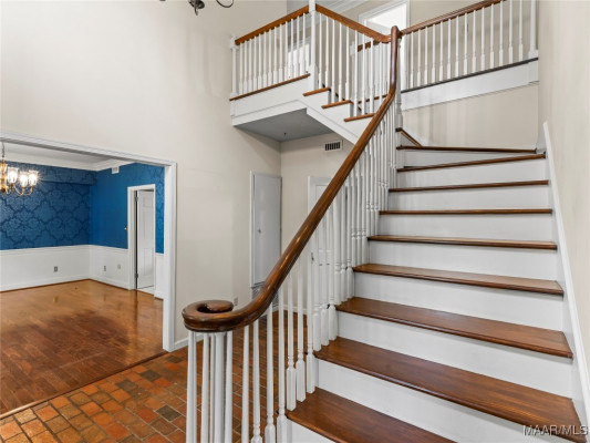Step inside to a welcoming foyer with classic brick flooring and a picture-perfect staircase ideal for memorable photos. The formal living and dining rooms offer elegant spaces for hosting—whether it’s a cozy dinner or a lively celebration.