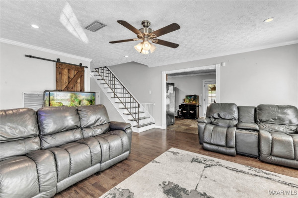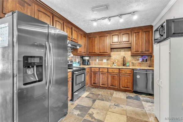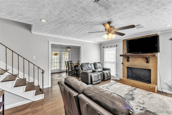 have your morning coffee. The primary bedroom/bathroom are conveniently located downstairs, along with 2 more bedrooms and a full bath. Two additional good sized bedrooms are located upstairs and another full bath. This home has updated LVP flooring with beautiful granite countertops & tile backsplash in the kitchen. There are 2 HVAC units, one servicing upstairs & one for downstairs. Owners will enjoy having Prattville’s amenities at their fingertips.