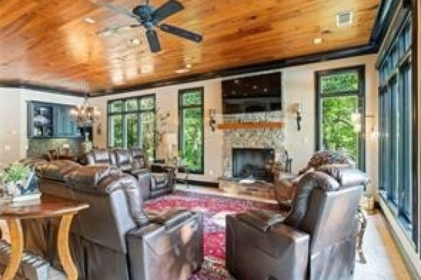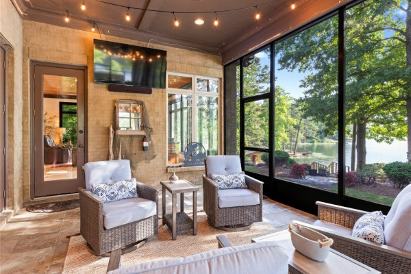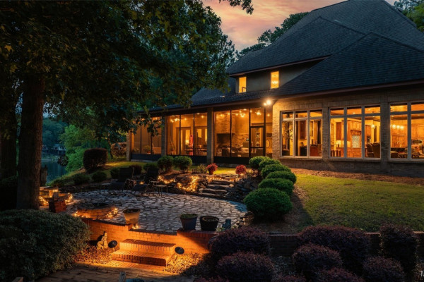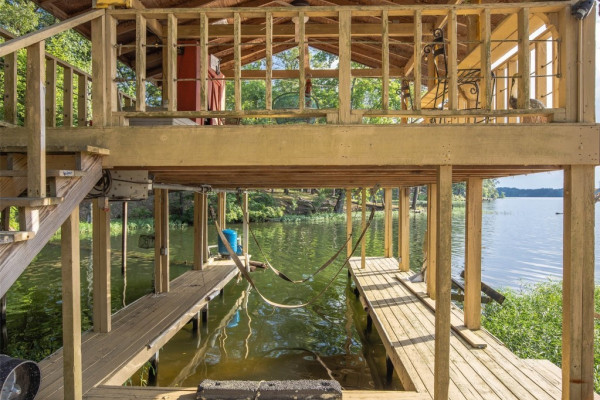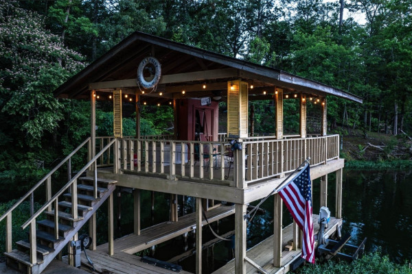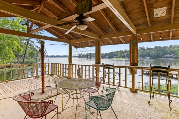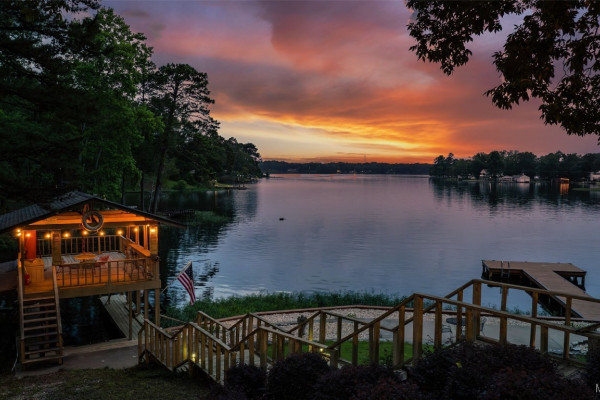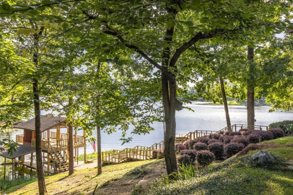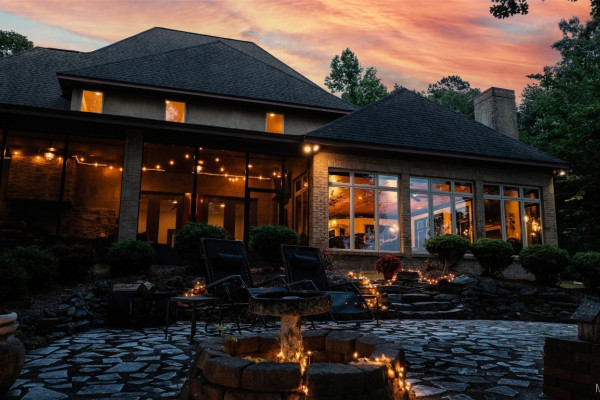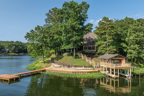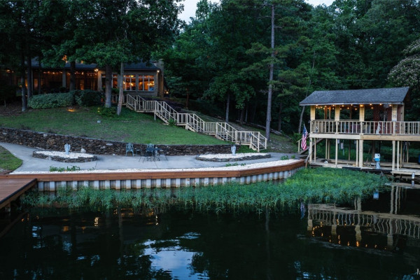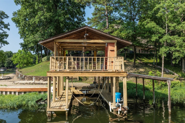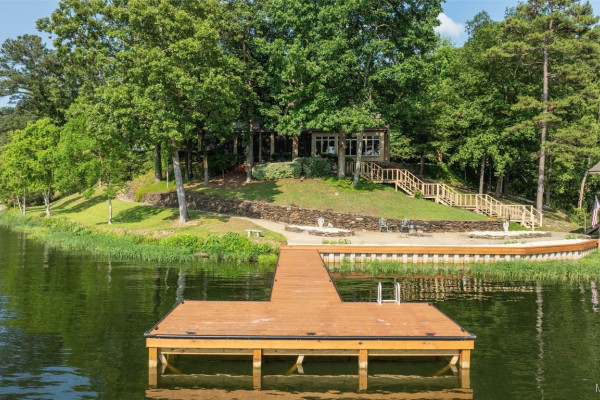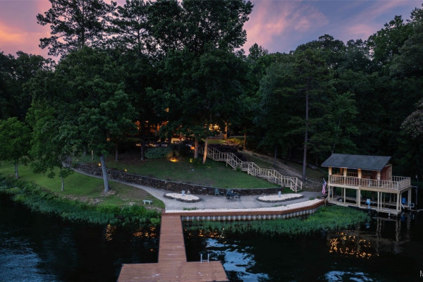 Venture outside to discover your own private oasis, featuring a covered porch complete with an outdoor kitchen while taking in the serene lake views. The terrace level features a firepit and stone steps leading to the two-story dock offers easy access to the water, providing endless opportunities for swimming, boating, and fishing right from your doorstep.