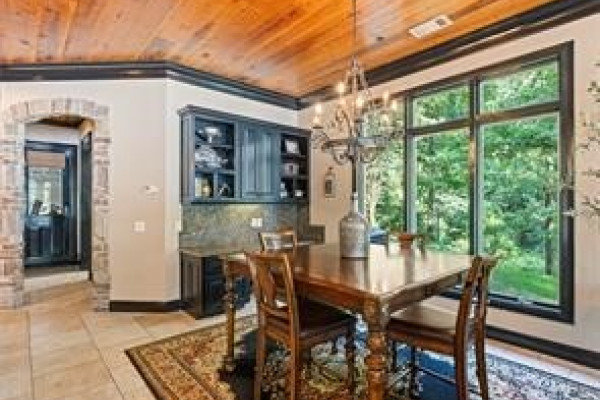 With 5 bedrooms, 4 full baths and two half baths this home provides ample space for both relaxation and entertainment. From the moment you step inside, you’ll be greeted by the warm embrace of heart pine ceilings in the great room, complemented by arched stone doorways that add a touch of elegance to the main level.