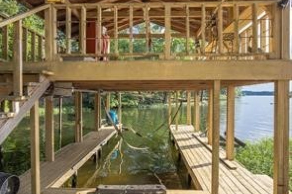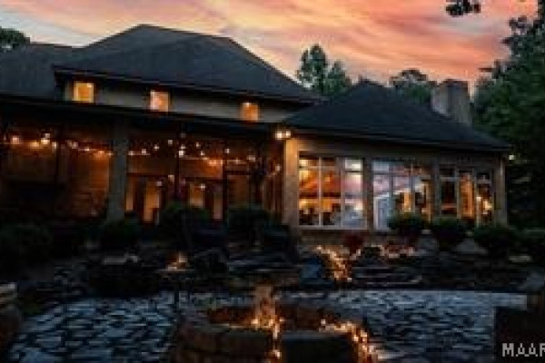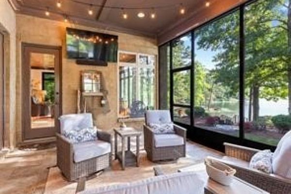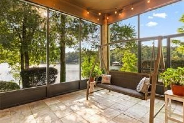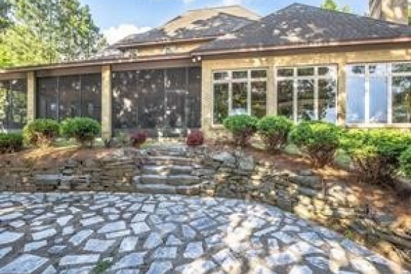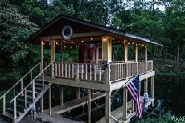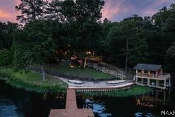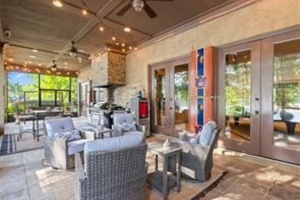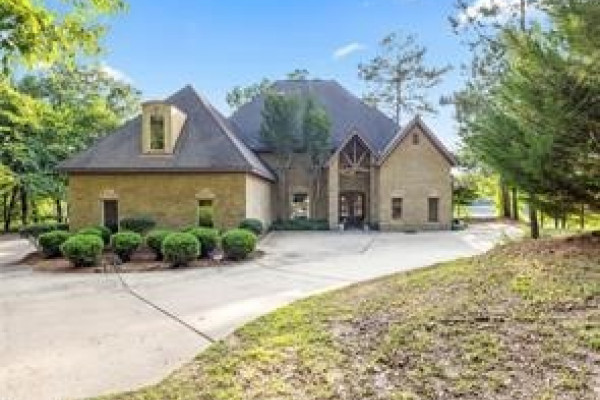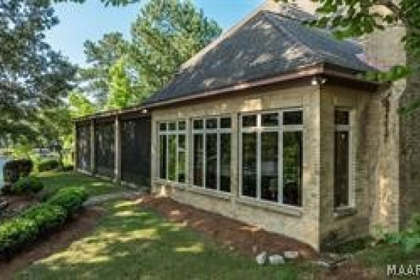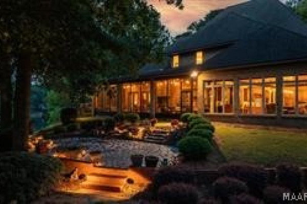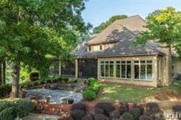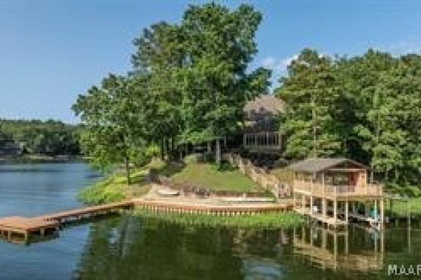 Experience elevated lakefront living on the pristine shores of Lake Jordan with this exceptional estate offering 406± FEET OF PRIME WATERFRONT. This remarkable residence features 5 BEDROOMS, 4 FULL BATHS, AND 2 HALF BATHS, thoughtfully designed for both LUXURY AND COMFORT. The GREAT ROOM showcases stunning HEART PINE CEILINGS and ARCHITECTURAL STONE DOORWAYS that create warmth and timeless elegance throughout the main level.