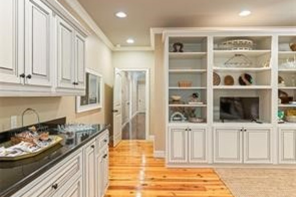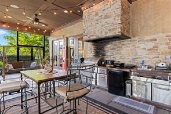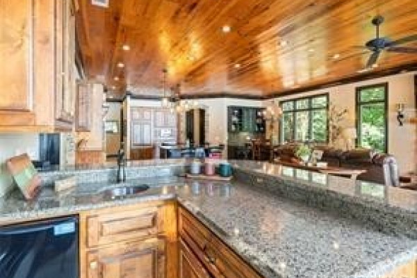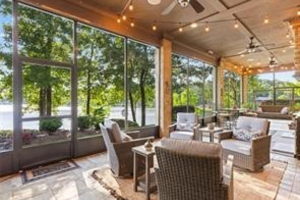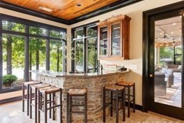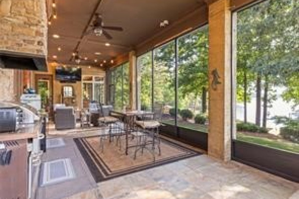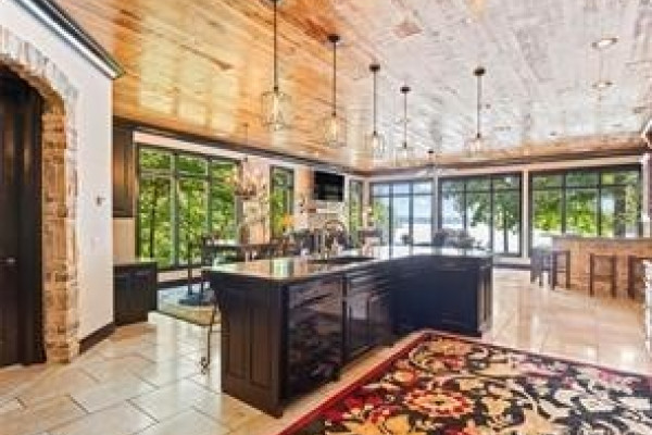 The CHEF’S DREAM KITCHEN is appointed with TWO KITCHENAID DISHWASHERS, JENNAIR ELECTRIC COOKTOP, JENNAIR DOUBLE OVENS, A KITCHENAID ICE MACHINE, and a BUILT-IN ENTERTAINING BAR perfect for hosting. Seamless indoor-outdoor living awaits with a COVERED PORCH AND FULL OUTDOOR KITCHEN overlooking breathtaking lake views.