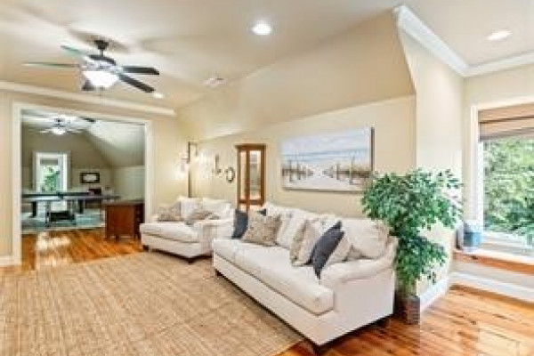 The TERRACE LEVEL features a FIREPIT AREA and STONE STEPS leading to a PRIVATE TWO-STORY DOCK, providing effortless access to swimming, boating, and fishing. With MAIN LEVEL GUEST SUITES, an UPSTAIRS BONUS / GAME ROOM, and expansive waterfront frontage, this property embodies the ultimate LAKE JORDAN LIFESTYLE — REFINED, PRIVATE, AND UNFORGETTABLE.