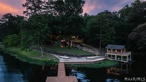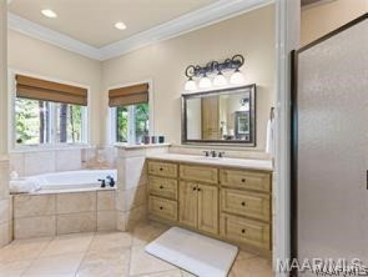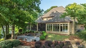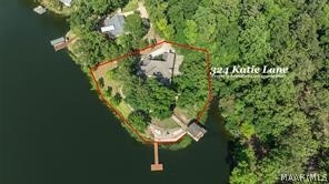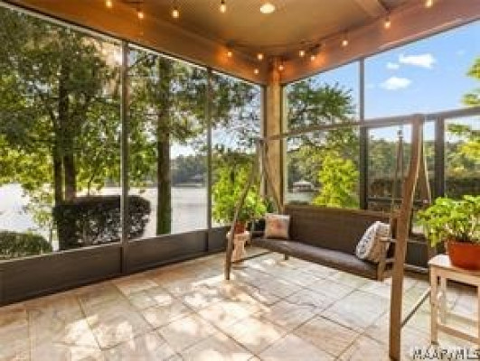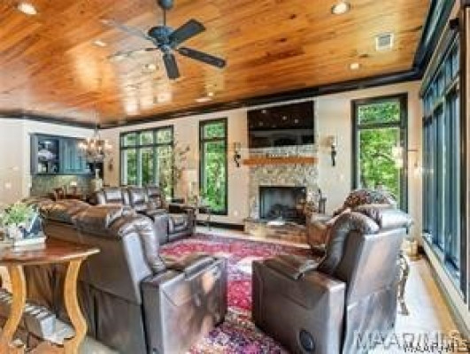 Experience elevated lakefront living on the pristine shores of Lake Jordan with this exceptional estate offering 406± FEET OF PRIME WATERFRONT. This remarkable residence features 5 BEDROOMS, 4 FULL BATHS, AND 2 HALF BATHS, thoughtfully designed for both LUXURY AND COMFORT. The GREAT ROOM showcases stunning HEART PINE CEILINGS and ARCHITECTURAL STONE DOORWAYS that create warmth and timeless elegance throughout the main level.