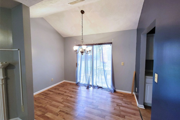 AVAILABLE MAY 3, 2025. You’re going to love the laminate wood floors in this house that travel throughout the living spaces! Vaulted ceilings and an open concept make it large and easy to entertain. The sliding glass back door overlooks the back yard complete with lots of mature trees and storage shed. This is also a split floor plan with a large master suite. Heat is gas, tenant is responsible for yard maintenance, pest control, air filters and PETS ALLOWED up to 25 pounds with $200 deposit per pet. Section8 is NOT Accepted.