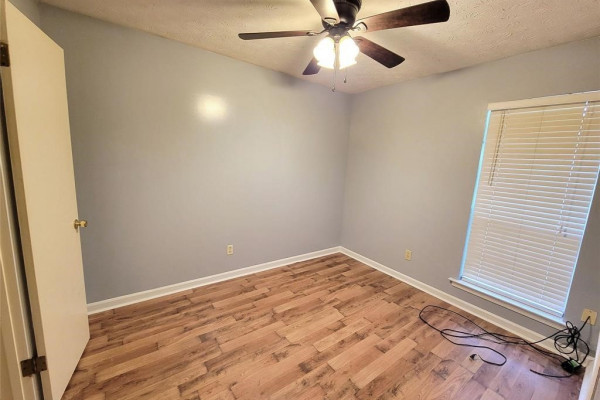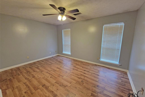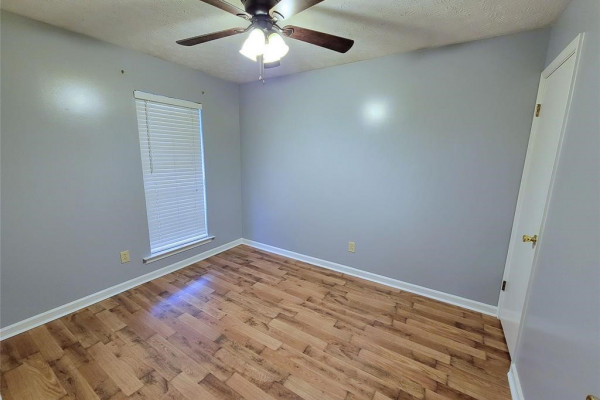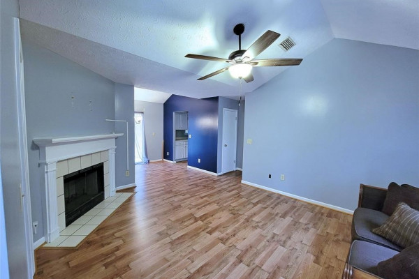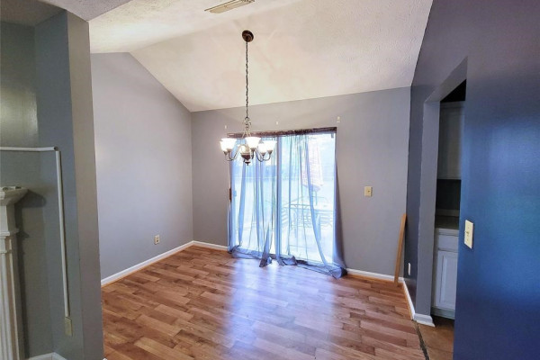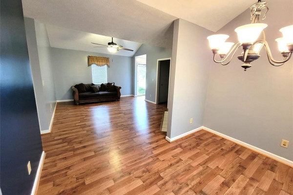 You’re going to love the laminate wood floors in this house that travel throughout the living spaces! Vaulted ceilings and an open concept make it large and easy to entertain. The sliding glass back door overlooks the back yard complete with lots of mature trees and storage shed. This is also a split floor plan with a large master suite.