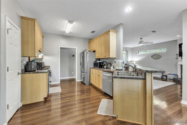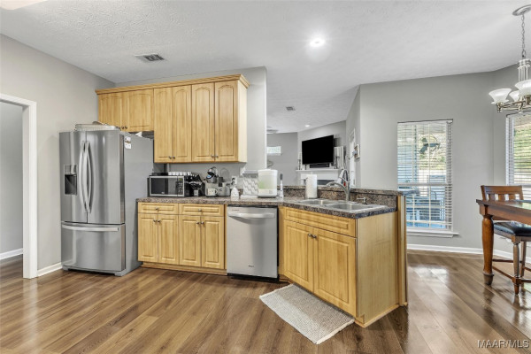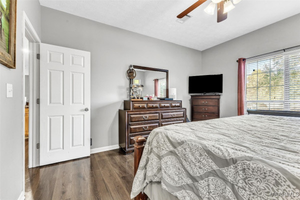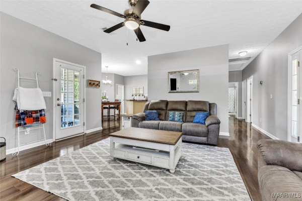 Are you looking for a move-in ready home with all the right updates? This 3-bedroom, 2-bathroom beauty is sure to impress! Pride of ownership shines throughout, with new flooring, fresh paint, and over 1,500 sq. ft. of comfortable living space. Major updates give you peace of mind, including a new HVAC system (2023) and a new water heater (2024). As you step onto the covered front porch, you’ll enter a spacious living room featuring tall ceilings and a cozy wood-burning fireplace—the perfect spot to gather with family and friends. Just off the living room is the kitchen, complete with stainless steel appliances, ample cabinetry, a breakfast bar, pantry, and a bright breakfast nook. The primary suite offers generous space and a en suite bath with a jetted soaking tub, separate walk-in shower, and a large walk-in closet. The two additional bedrooms are equally inviting—each with great closet space and easy access to the second full bath, making them perfect for family, guests, or a home office. Step outside to enjoy a large covered patio, ideal for outdoor entertaining. The fully fenced backyard provides plenty of room for kids, pets, or gardening. Situated on a shaded lot in a convenient location just off Hwy 231, this home truly has it all. Don’t wait—schedule your private tour today!
