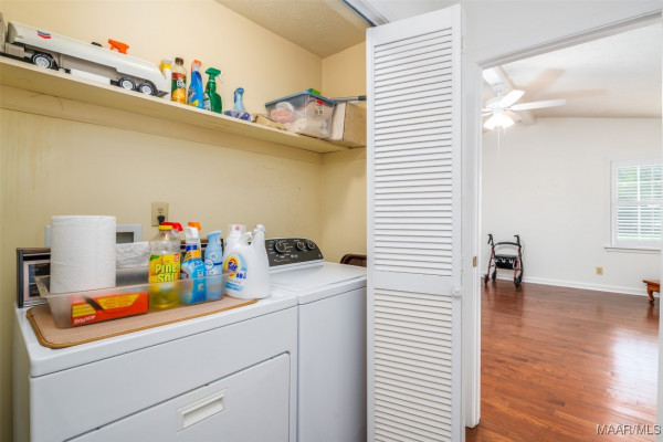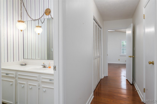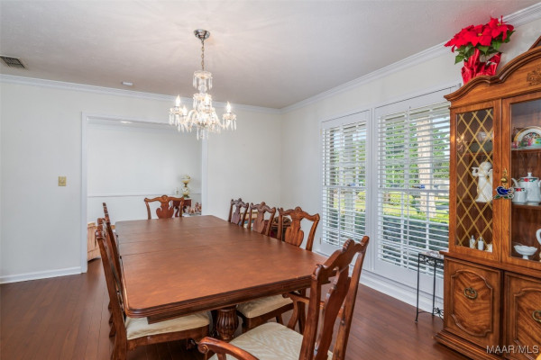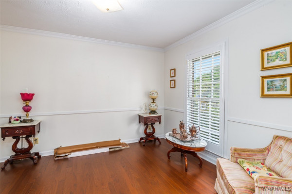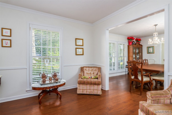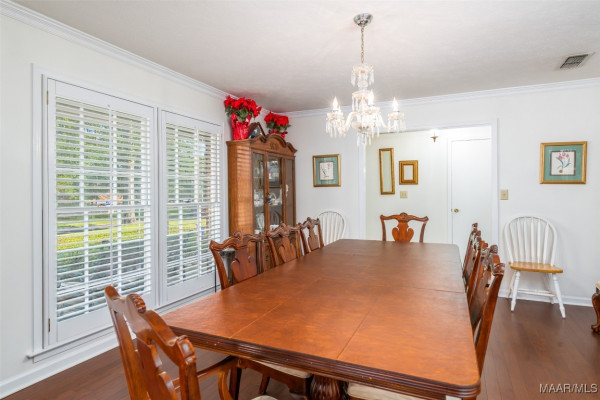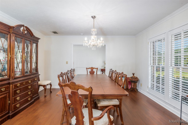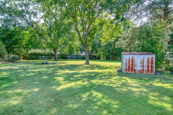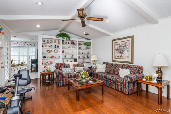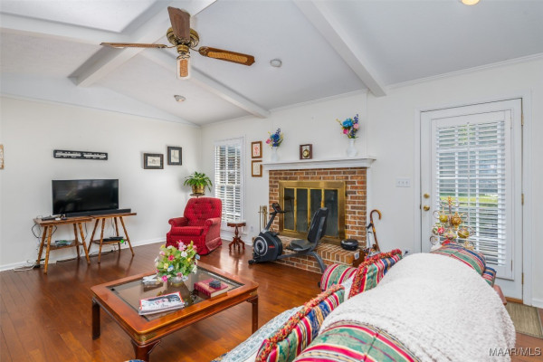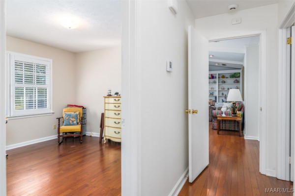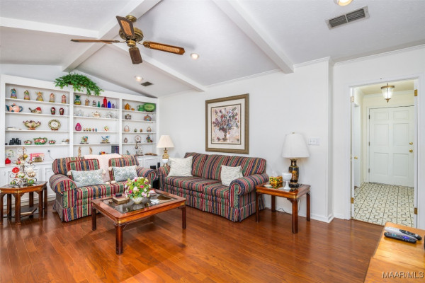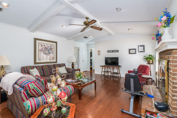 This well-maintained 4-bedroom, 2-bath home offers a spacious and functional layout. The formal living and dining rooms provide a welcoming space for guests, while the den features a beamed ceiling, fireplace, and a wall of built in shelving. All bedrooms are generously sized with ample closet space, and the laundry area is conveniently located near the bedrooms. Beautiful hardwood floors flow throughout much of the home and it has been recently painted. Plantation shutters throughout the home. Situated on a large lot, the flat backyard includes a patio perfect for outdoor gatherings. Call your favorite agent to schedule a showing today! Property being sold AS-IS.