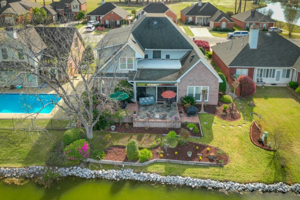 COVETED LAKEFRONT CUL-DE-SAC LIVING IN TOWNE LAKE.  ENJOY STUNNING SUNSETS AND TRANQUIL FOUNTAIN SOUNDS FROM THE SUNROOM OR PALATIAL PORCH.  PRIMARY SUITE ON MAIN LEVEL FEATURES TWO WALK-IN CLOSETS.  ENORMOUS CHEF’S KITCHEN WITH STAINLESS APPLIANCES, STONE COUNTERS, STONE TILE, ISLAND AND AN ABUNDANCE OF FLOOR TO CEILING CABINETRY FOR STORAGE.  FABULOUS OPEN FLOOR PLAN FOR ENTERTAINING.  GRAND TWO-STORY FIRESIDE FORMAL LIVING ROOM.  3 BEDROOMS, 2 BATHS ON SECOND LEVEL HOST WALK-IN CLOSETS.  PLANTATION SHUTTERS AND CROWN MOLDING THROUGH-OUT.  GARAGE FEATURES SEPARATE WALK-IN STORAGE CLOSET.