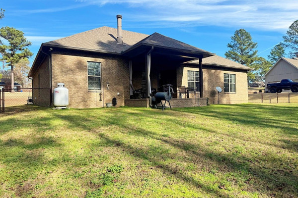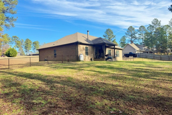 Welcome to 3315 Little Road in Plantation Pines subdivision in Tallassee, AL. Sitting off the road on a beautiful 1.26 acre lot, this 4 bedroom, 3 bathroom brick one level home, is move in ready. Pride of ownership is obvious both inside & outside the home. As you walk up to the covered front porch & enter the home, your eyes are drawn to the very open floor, split bedroom floor plan. Immediately to your left is a formal dining room that can accommodate a large formal dining room set & boasts lots of natural light. The focal point of the spacious greatroom is the gaslog corner fireplace with raised hearth & beautiful mantle. The breakfast nook off the kitchen has views of the woods behind the home. The kitchen has a three or four seat breakfast bar, stainless steel appliances, including a double oven, microwave, & dishwasher. Granite countertops adorn the counters with lots of cabinets for storage & a pantry. The laundry room has cabinets for storage & is convenient to the main bedroom. The main bedroom is spacious & cozy with views of the backyard. The main bathroom features double split vanities, a beautiful custom built shower, private water closet, & walk in closet. The other three roomy bedrooms are on the opposite of the home with nice closet space. A full bath is conveniently located between the bedrooms & convenient as well to the greatroom. The wonderful bonus with this home is a huge multi purpose tiled room that could be the fifth bedroom with a large walk in closet for storage, full bath & entrance from the driveway. It would also be a great rec room, den, or bonus room. The exterior amenities of this home is a driveway with two car parking pad along with an additional parking pad. There are gutters with leaf guards on the home, a detached storage building with a drive in door, & a beautiful covered patio with fenced in yard. You have to see this highly functional floor plan to believe it. Convenient to Maxwell/Gunter AFB and is a must see!