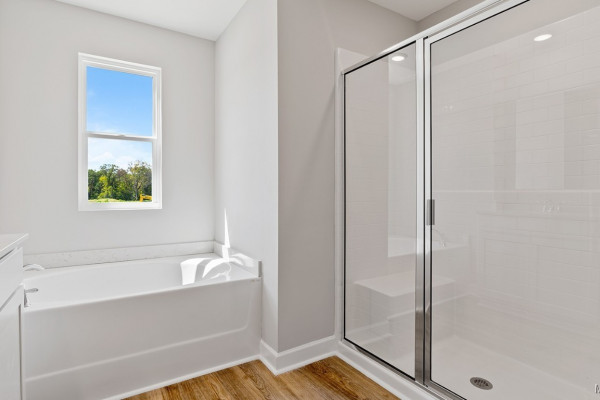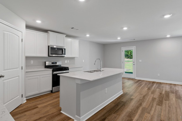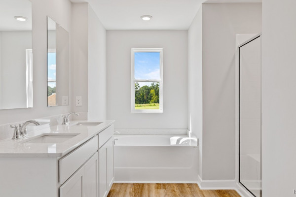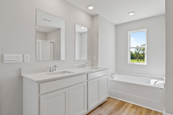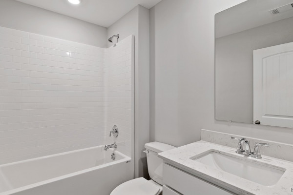 inviting living space, designed to feel both comfortable and effortlessly functional. As you step inside, you’re greeted by a foyer, with convenient access to the flex space, the open concept living and kitchen space, and a bedroom bathroom combo just beyond. The open-concept kitchen, dining area, and great room create a bright, airy environment ideal for everyday living and entertaining, featuring soft close cabinet and drawers, Carrara Miami Quartz countertops, stainless steel appliances, an eight-inch undermount sink with Brantford chrome fixtures, and an open pantry with built-in shelving, all flowing naturally to the covered porch for seamless indoor-outdoor enjoyment. Moving upstairs you’ll find an upstairs living space, the laundry room, 3 bedrooms, and the primary suite. This private primary suite serves as a peaceful retreat with a separate standing shower, a garden tub, a double vanity sink with quartz countertops, Brantford chrome fixtures featured in all baths, a private water closet, and a spacious walk-in closet. Every home in Chase Creek includes our Home Is Connected® Smart Home Technology Package, giving you the convenience of controlling your home from your smart device whether you’re near or away. Photos may be of a similar home and not necessarily the subject property; images are representational only. Contact one of our New Home Specialists today to schedule your private tour.