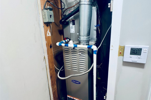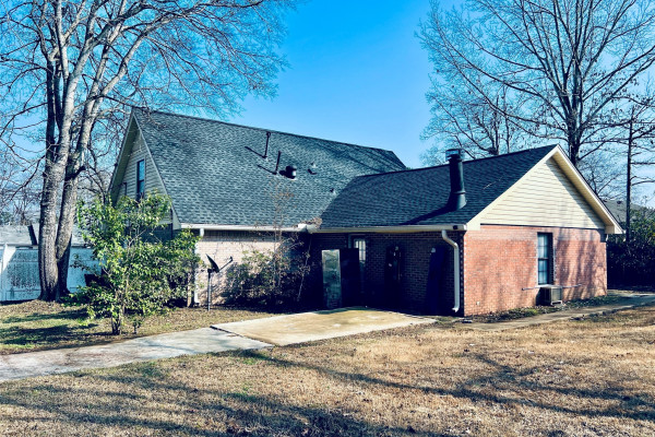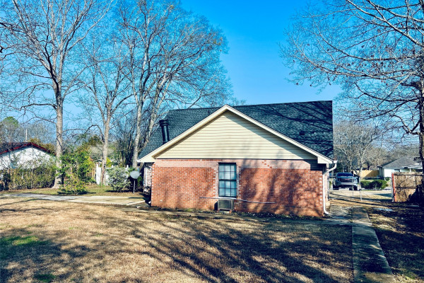 This charming single-story brick home combines classic traditional style with modern interior updates, offering a move-in-ready sanctuary. The exterior features a timeless light brick facade accented by bold red shutters and a high-pitched architectural shingle roof, creating striking curb appeal. Mature trees frame the property, providing a sense of established privacy and natural beauty.