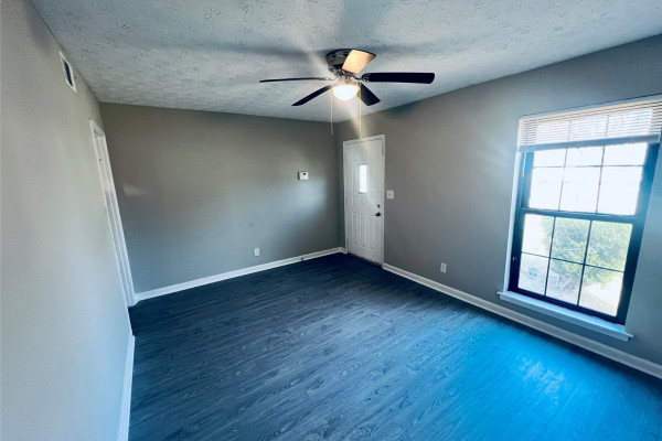 The bedrooms offer a cozy retreat with plush neutral carpeting and soft gray walls, while large windows throughout the home ensure every room has natural light. Practicality meets comfort with ceiling fans installed in major living spaces and bedrooms to maintain a pleasant breeze year-round. Outside, the expansive yard provides plenty of room for outdoor activities, gardening, or future expansion. With its blend of traditional charm and clean, modern finishes, this home is perfect for those seeking a stylish and comfortable lifestyle. Roof replaced around 2023.