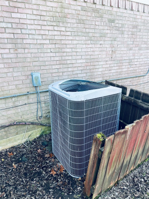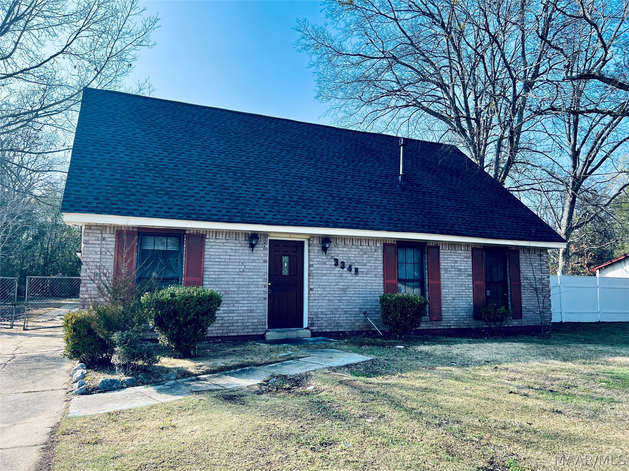 This charming single-story brick home combines classic traditional style with modern interior updates, offering a move-in-ready sanctuary. The exterior features a timeless light brick facade accented by bold red shutters and a high-pitched architectural shingle roof, creating striking curb appeal. Mature trees frame the property, providing a sense of established privacy and natural beauty.