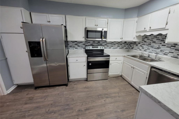 You’re going to love this fully updated home featuring laminate wood flooring and fresh light-gray paint throughout. The fireplace has been white-washed, adding a bright, modern touch to the living space.
