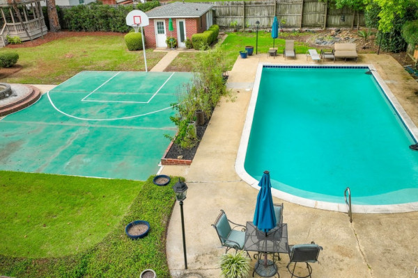 Are you looking for five bedrooms, three baths, a terrific office, fabulous eat-in kitchen, large dining room and a wonderful great room with fireplace, wet bar and surround sound for Movie Night? This Bankhead Avenue home could be the one! The main level has two bedrooms; (1) The Master bedroom with spacious ensuite bath and large walk-in closet and (2) the second that is currently used as a fitness room. The pictures are here, but a personal tour is best. Upstairs, you will find three large bedrooms with each having plenty of closet space and the third full bathroom. The home sits on a little more than a half-acre lot which allows for a gazebo with a hot tub, a swimming pool – resurfaced in 2023, a pool house with working sauna, a generous brick patio, and a partial basketball court. Worried about water bills? No need, 3463 Bankhead comes complete with a well to supply the pool refills and the irrigation system for the yard. No need to worry about the roof condition as a new roof was installed earlier this year (2024). Other notable features include an endless supply Rinnai gas water heater, and high-end appliances including a Viking Microwave oven, a Sub-Zero Refrigerator and Sub-Zero Freeze. Want something your friends do not have? This home has a built-in drinking water fountain. The list of other features is too long to completely share, so schedule your personal tour today for this magnificent Bankhead Ave Home.