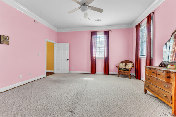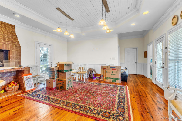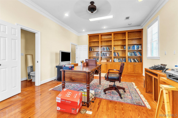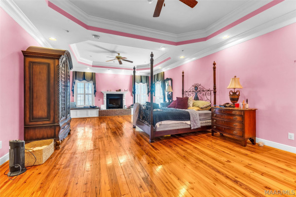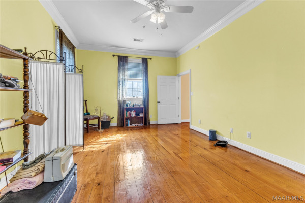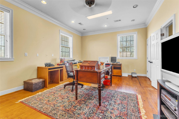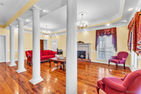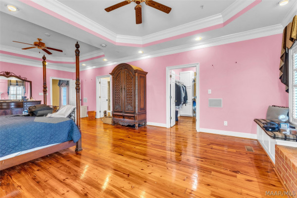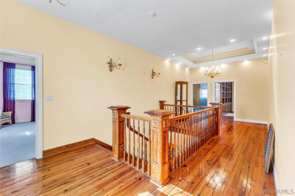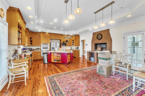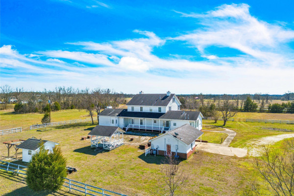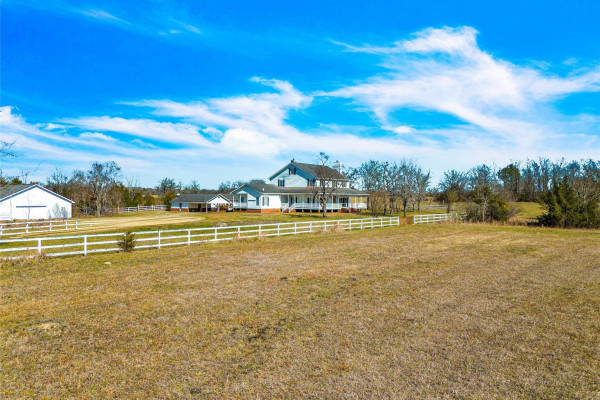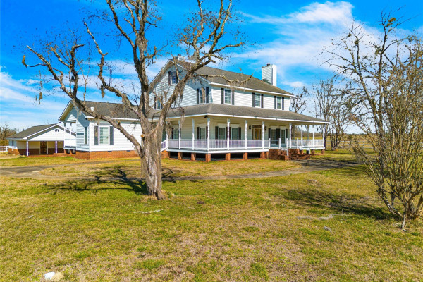 Located on Highway 80 near the airport, this exceptional 30-acre estate offers privacy, space, and timeless character with thoughtfully designed living and entertaining areas. Rich reclaimed hardwood floors span the entire downstairs, setting the tone for the home’s warmth and craftsmanship. The spacious living room features a fireplace, while the inviting den room is equipped with custom built-in cabinetry, drop-down screen, and projector. Plantation shutters add classic elegance. Formal dining room designed to host on a grand scale, complete with built-in cabinetry, and ample space for an oversized dining table. A wet bar enhances entertaining, while the kitchen is truly the heart of the home—featuring a large work island, gas cooktop, refrigerator, expansive breakfast room, and a stunning raised brick fireplace ideal for gathering with family and friends. Just steps away, a dream pantry offers exceptional storage and a wine cooler. The primary suite is extraordinarily spacious and includes a cozy fireplace with gas logs. The luxurious bath boasts double vanities, separate shower, garden tub, and two oversized walk-in closets. A private study with additional built-in cabinetry is located on the first floor, along with a well-appointed laundry room offering sinks and generous counter space. Upstairs, you’ll find four additional bedrooms—five total in the home. The fourth bedroom provides flexibility as an optional bedroom or additional study. Two Jack-and-Jill baths serve the upstairs bedrooms. Storage is abundant.