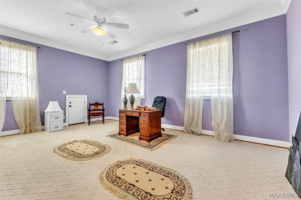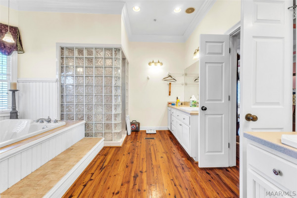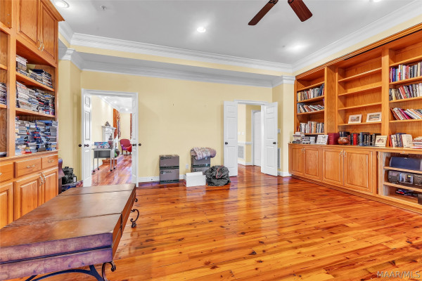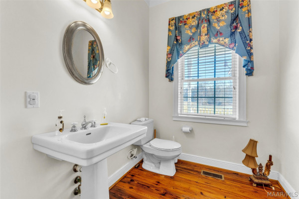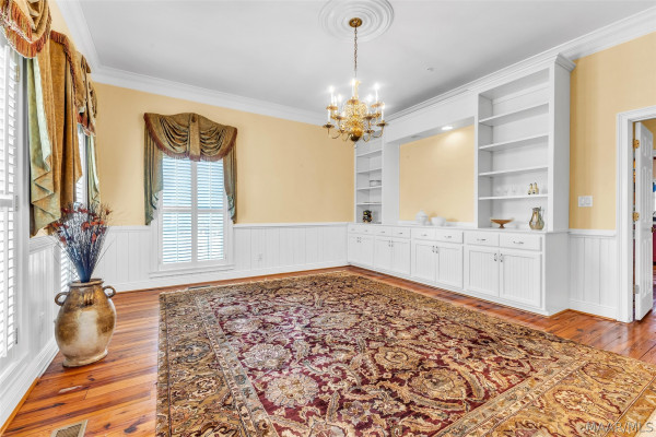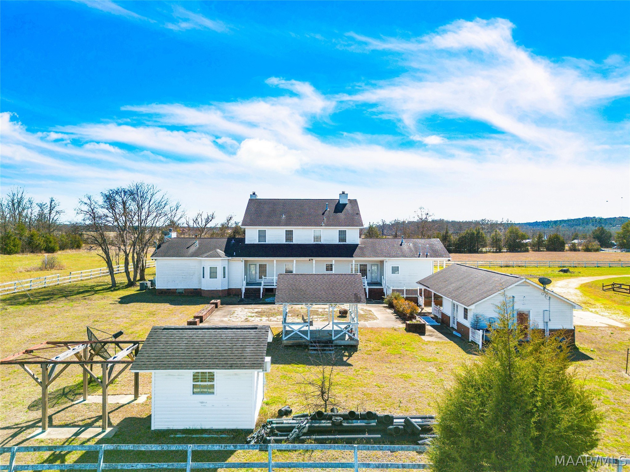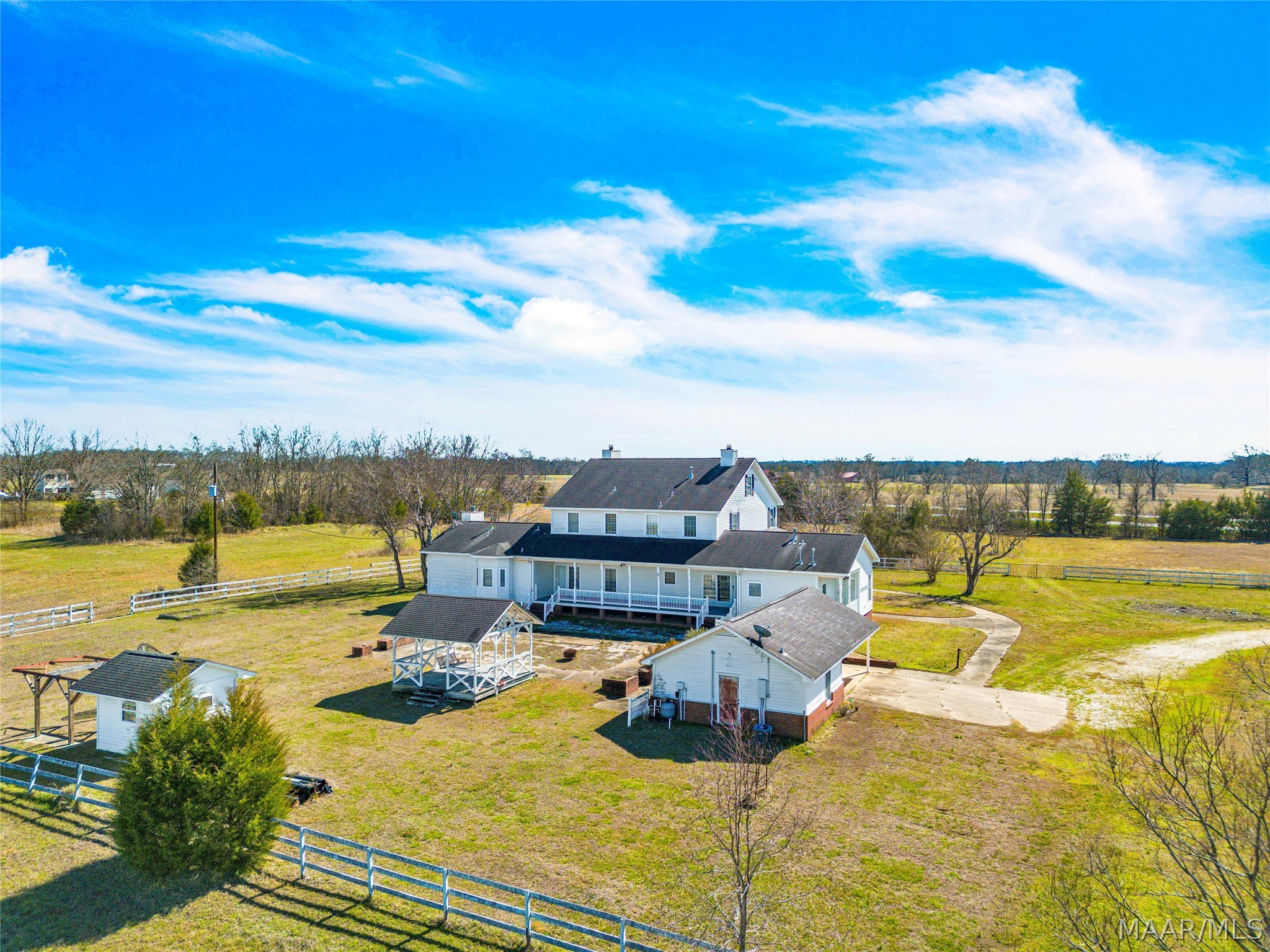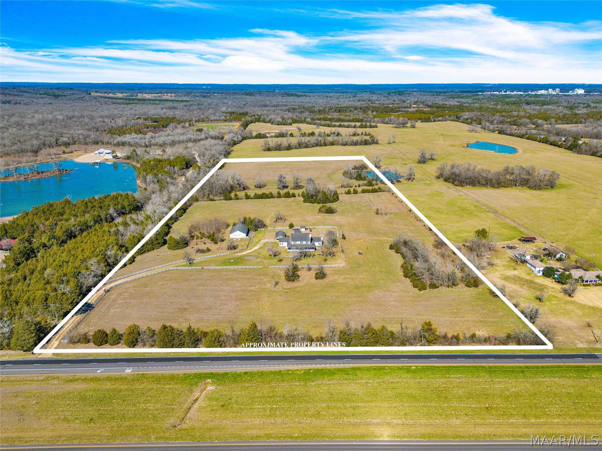 Located on Highway 80 near the airport, this exceptional 30-acre estate offers privacy, space, and timeless character with thoughtfully designed living and entertaining areas. Rich reclaimed hardwood floors span the entire downstairs, setting the tone for the home’s warmth and craftsmanship. The spacious living room features a fireplace, while the inviting den room is equipped with custom built-in cabinetry, drop-down screen, and projector. Plantation shutters add classic elegance. Formal dining room designed to host on a grand scale, complete with built-in cabinetry, and ample space for an oversized dining table. A wet bar enhances entertaining, while the kitchen is truly the heart of the home—featuring a large work island, gas cooktop, refrigerator, expansive breakfast room, and a stunning raised brick fireplace ideal for gathering with family and friends. Just steps away, a dream pantry offers exceptional storage and a wine cooler. The primary suite is extraordinarily spacious and includes a cozy fireplace with gas logs. The luxurious bath boasts double vanities, separate shower, garden tub, and two oversized walk-in closets. A private study with additional built-in cabinetry is located on the first floor, along with a well-appointed laundry room offering sinks and generous counter space. Upstairs, you’ll find four additional bedrooms—five total in the home. The fourth bedroom provides flexibility as an optional bedroom or additional study. Two Jack-and-Jill baths serve the upstairs bedrooms. Storage is abundant.