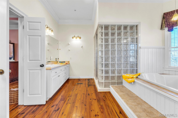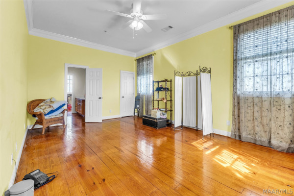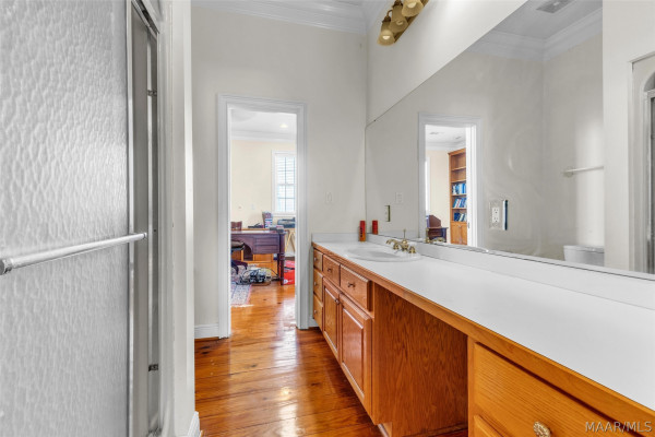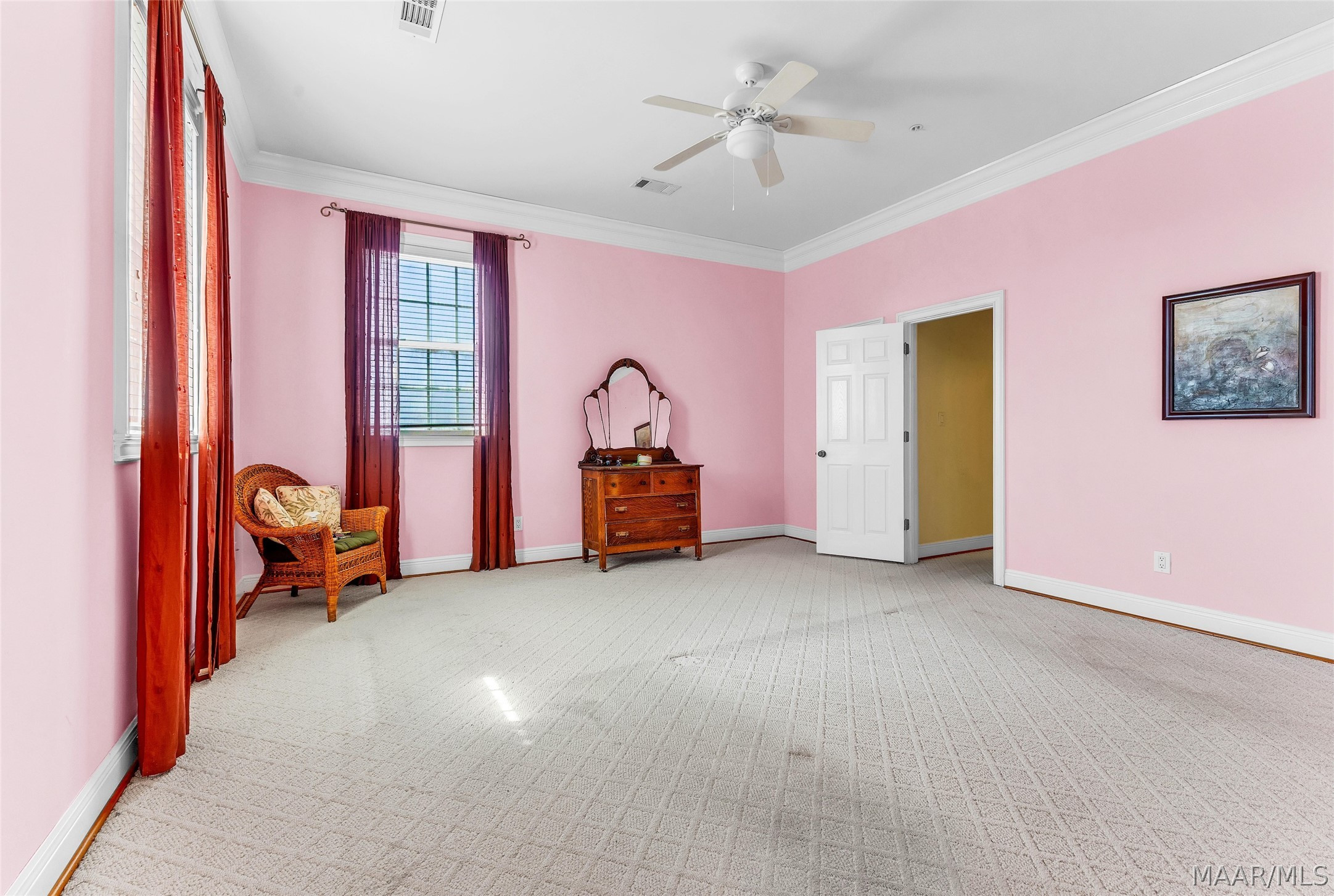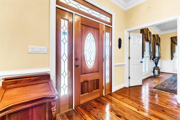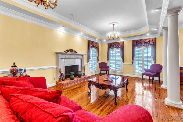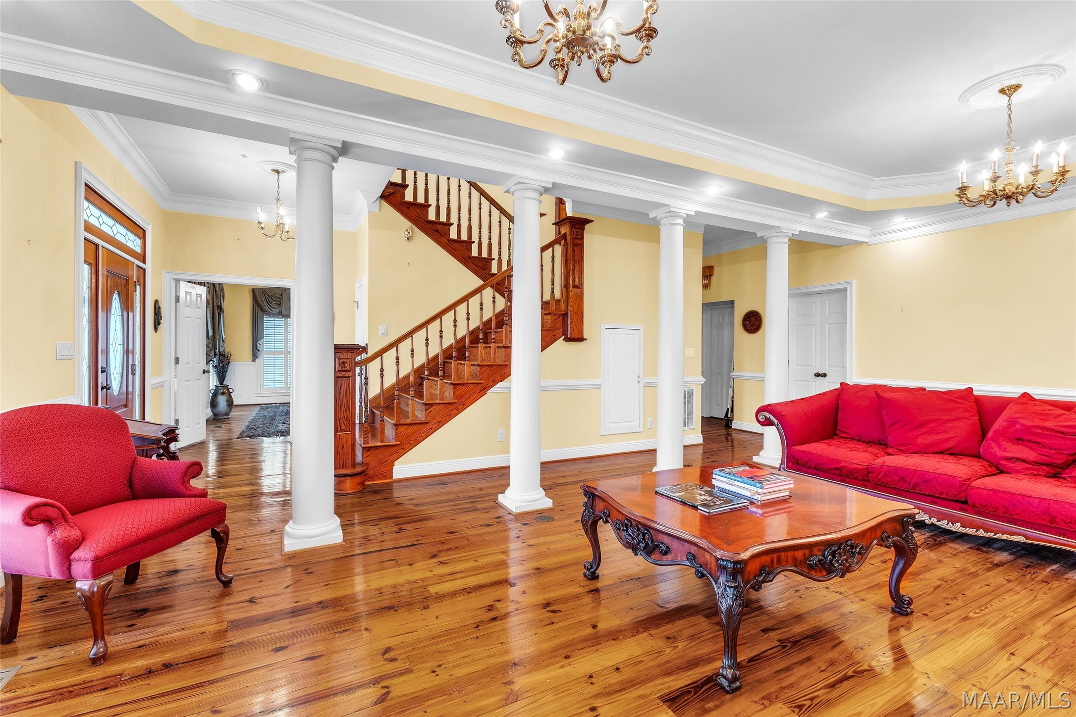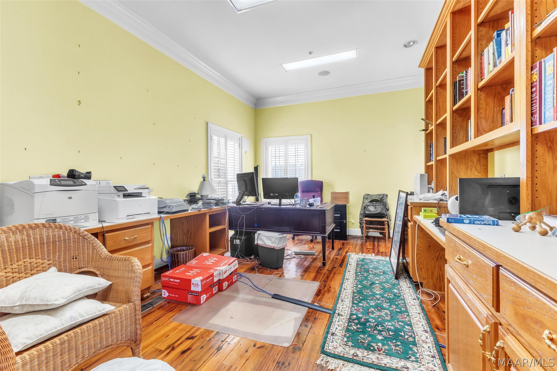 Located on Highway 80 near the airport, this exceptional 30-acre estate offers privacy, space, and timeless character with thoughtfully designed living and entertaining areas. Rich reclaimed hardwood floors span the entire downstairs, setting the tone for the home’s warmth and craftsmanship. The spacious living room features a fireplace, while the inviting den room is equipped with custom built-in cabinetry, drop-down screen, and projector. Plantation shutters add classic elegance. Formal dining room designed to host on a grand scale, complete with built-in cabinetry, and ample space for an oversized dining table. A wet bar enhances entertaining, while the kitchen is truly the heart of the home—featuring a large work island, gas cooktop, refrigerator, expansive breakfast room, and a stunning raised brick fireplace ideal for gathering with family and friends. Just steps away, a dream pantry offers exceptional storage and a wine cooler. The primary suite is extraordinarily spacious and includes a cozy fireplace with gas logs. The luxurious bath boasts double vanities, separate shower, garden tub, and two oversized walk-in closets. A private study with additional built-in cabinetry is located on the first floor, along with a well-appointed laundry room offering sinks and generous counter space. Upstairs, you’ll find four additional bedrooms—five total in the home. The fourth bedroom provides flexibility as an optional bedroom or additional study. Two Jack-and-Jill baths serve the upstairs bedrooms. Storage is abundant.